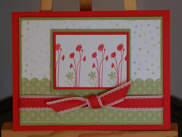 Da mir das Set Zuversicht so gut gefällt habe ich noch mal ein Kärtchen damit gewerkelt. Die Anregung dazu habe ich aus dem neuen Mini Katalog.Der Schriftstempel ist so toll eizusetzen für den Hintergrund.